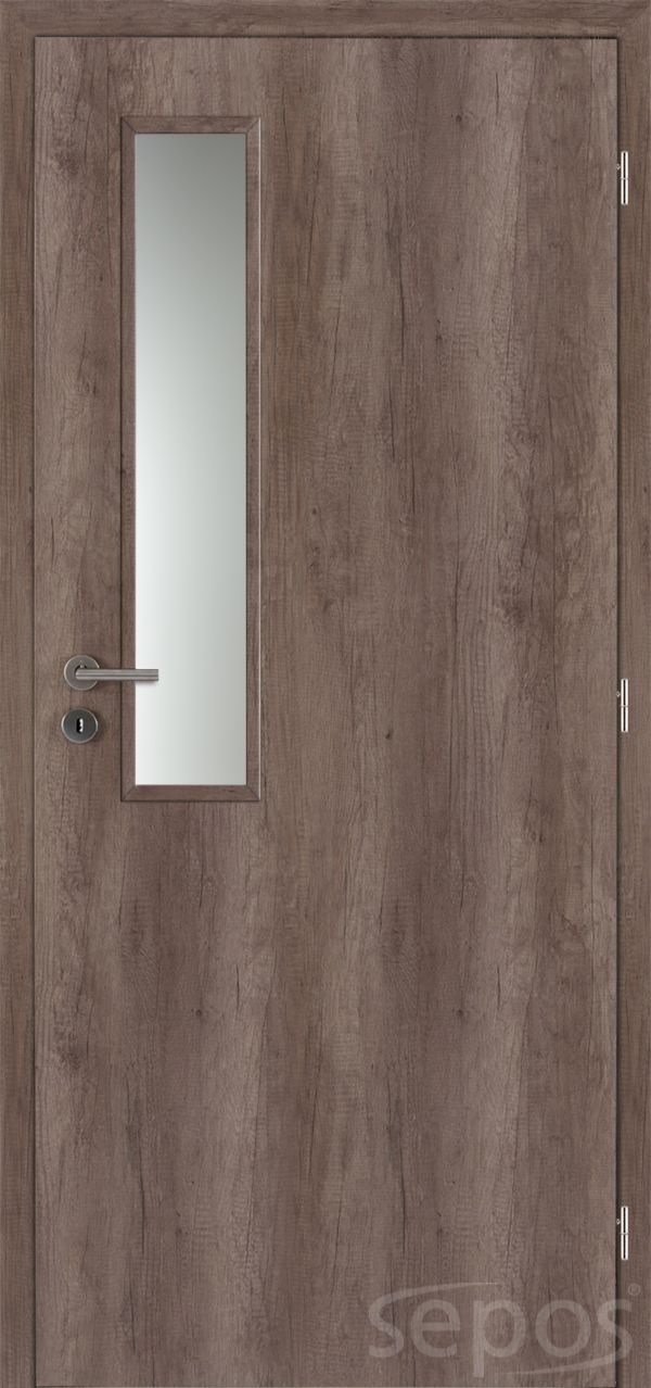 Model VERTIKUS se vyznačuje úzkým podélným výřezem v horní části dveří, který je osazen prosklenou kazetou. Tento model dveří můžete kombinovat s proskleným nebo plným modelem dveří z kolekce VERTIKA.